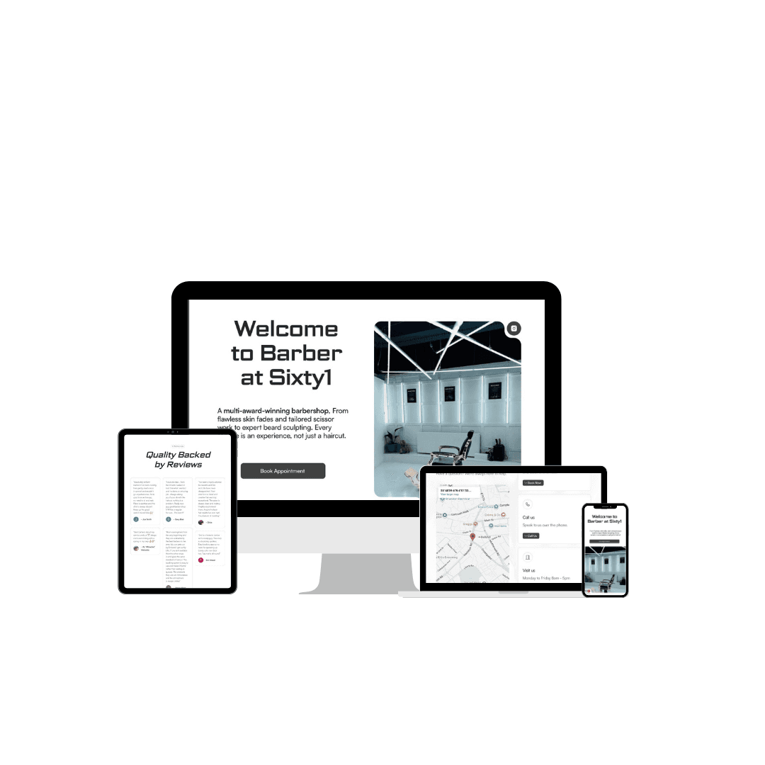 Emi from Barber at Sixty 1 wanted a minimal website that fit with the style of his barbershop - We worked closely to establish an aesthetically pleasing website, showcasing all services while encouraging bookings.